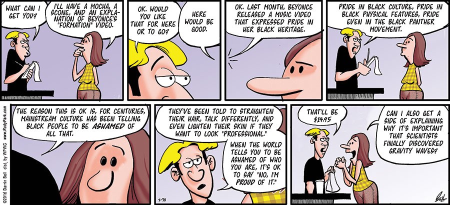 I’m a professional syndicated cartoonist. My comic strips “Candorville” and “Rudy Park,” and my editorial cartoons, appear in hundreds of newspapers. I’m also a cartoon contributor to the New Yorker, and a storyboard artist. I began my freelance career in 1993 while still a freshman at UC Berkeley, and My work’s been syndicated to newspapers since 2001.