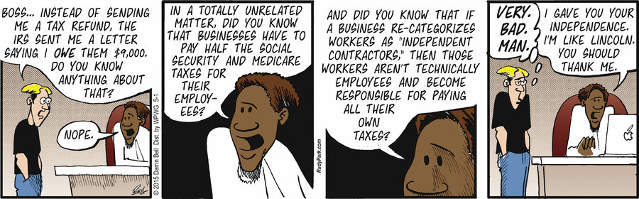 I’m a professional syndicated cartoonist. My comic strips “Candorville” and “Rudy Park,” and my editorial cartoons, appear in hundreds of newspapers. I’m also a cartoon contributor to the New Yorker, and a storyboard artist. I began my freelance career in 1993 while still a freshman at UC Berkeley, and My work’s been syndicated to newspapers since 2001.