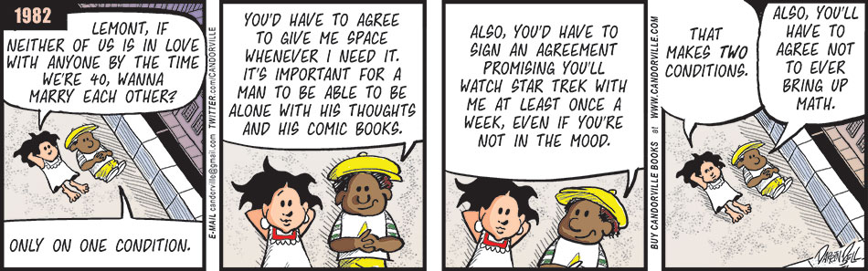 Which is how a relationship is supposed to be, I guess. We each focus on what we do best. That’s probably why opposites attract. Person A is happy to let person B take charge of the aspects of their lives Person B is good at, because person A isn’t interested in mastering it anyway, and vice versa. Makeda hasn’t taken out the trash or plunged a toilet in a decade, and I think it’s been just as long since I knew where my clothes were without asking someone (and I know she’s been moving them around just to make sure I need her to find them — it’s the only logical explanation).