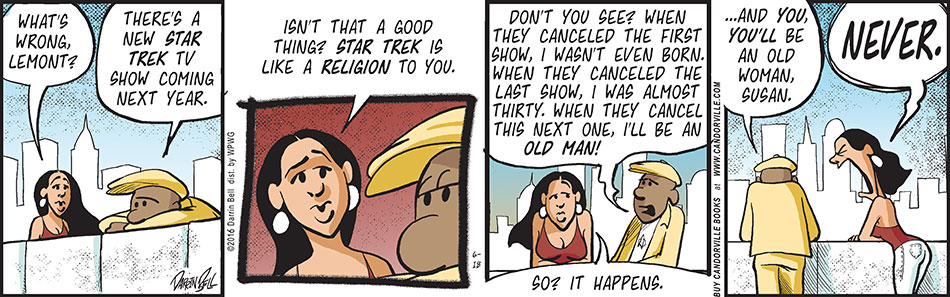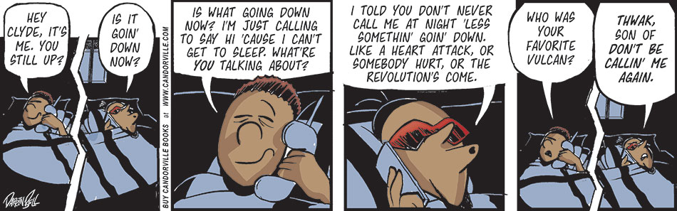 Listen to me talk about my work, the industry, Star Trek, Fringe, & what it’s like to draw a week of cartoons in one day on the Wacom Cintiq, at Tall Tale Radio. I also reveal a huge change taking place in my other comic strip, “Rudy Park.”
