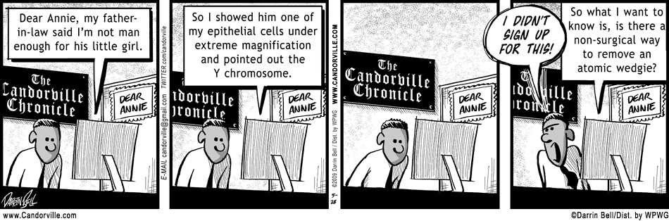 Candorville is dropped a lot less often than most new comics, but it still happens. Almost always, more than enough readers write in to convince editors they underestimated Candorville’s fan base, and they reinstate it. You can make that happen again. Remember the moral of “It’s a Wonderful Life”: Every time you save Candorville, a dead cartoonist gets his wings. Or something like that.