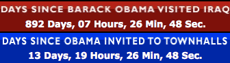 You know you haven’t got much to say about your opposition when you resort to condemning their logistics. First Fox News ran a “days since Barack Obama promised to appear on our show” clock. Now the Republican Party’s homepage is running their own countup clocks which count the days since Obama’s (a) visited Iraq, and (b) was invited to ten town hall meetings by John McCain.